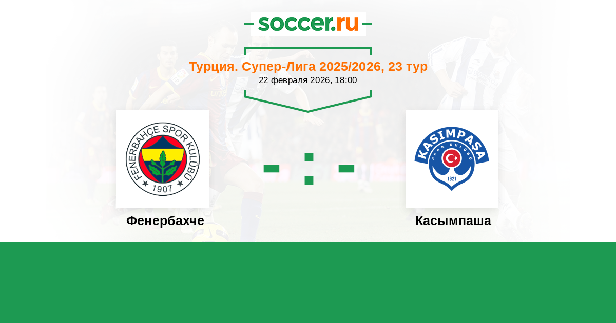 Турция. Суперлига 28.02.2022 Касымпаша Логотип футбольный клуб Касымпаша (Стамбул) 1:2 Логотип футбольный клуб Фенербахче (Стамбул) Фенербахче