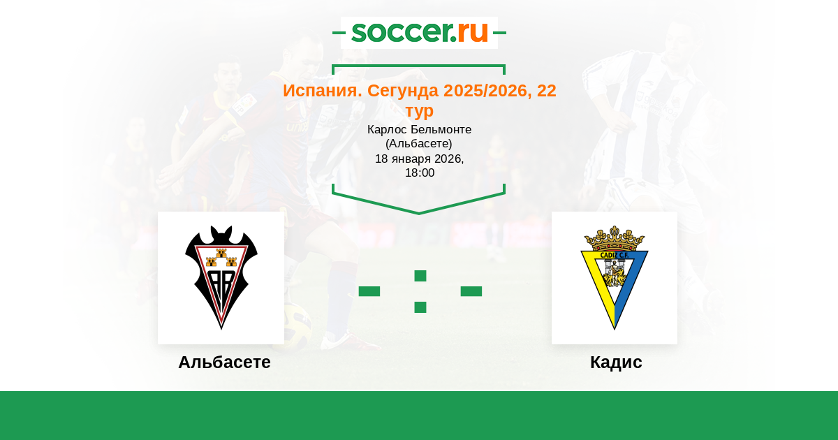 Испания. Сегунда 31.08.2025 Кадис Логотип футбольный клуб Кадис 2:1 Логотип футбольный клуб Альбасете Альбасете