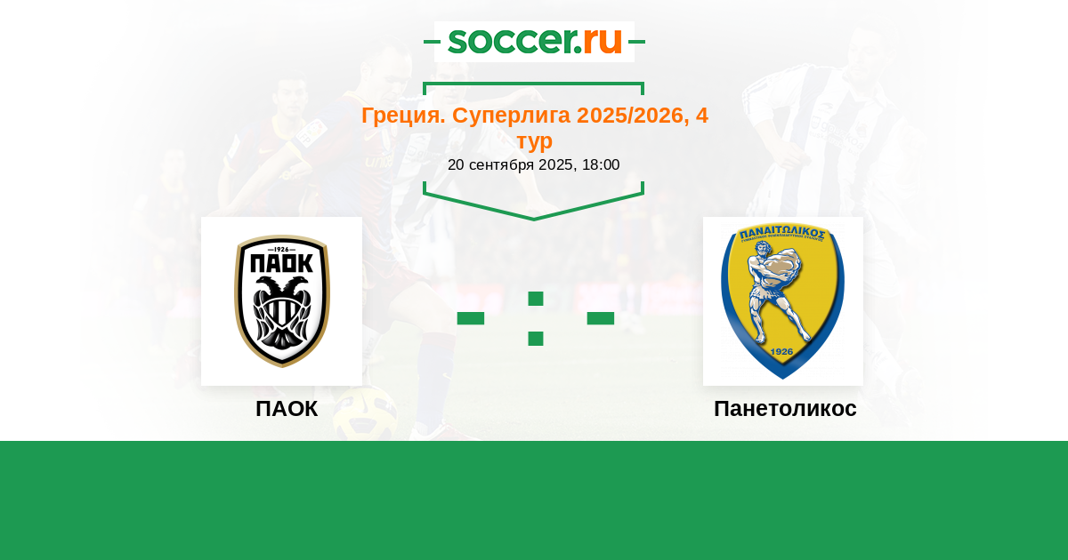 Греция. Суперлига 22.09.2021 Панетоликос Логотип футбольный клуб Панетоликос (Агринио) 1:2 Логотип футбольный клуб ПАОК (Салоники) ПАОК