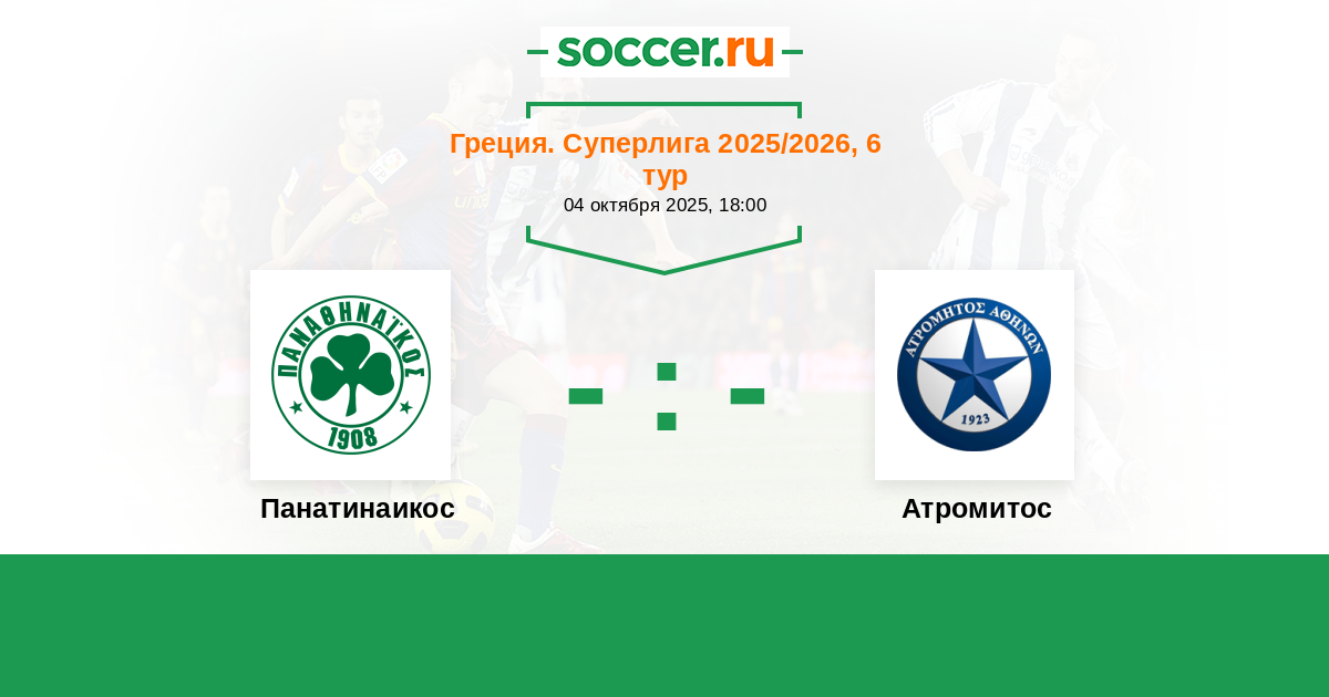 Греция. Суперлига 25.01.2026 Атромитос Логотип футбольный клуб Атромитос (Перистери) 0:0 Логотип футбольный клуб Панатинаикос (Афины) Панатинаикос