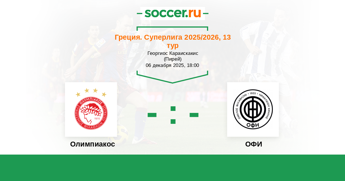 Греция. Суперлига 23.09.2007 Олимпиакос Логотип футбольный клуб Олимпиакос (Пирей) 6:2 Логотип футбольный клуб ОФИ (Ираклион) ОФИ