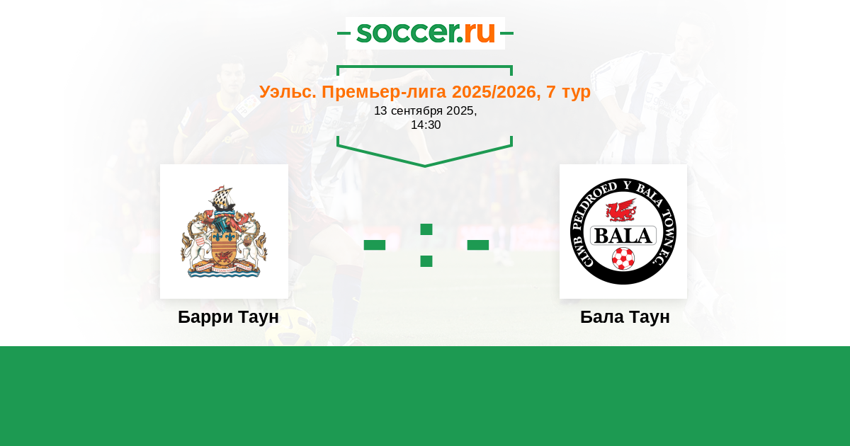 Уэльс. Премьер-Лига 10.08.2024 Барри Таун Логотип футбольный клуб Барри Таун 1:1 Логотип футбольный клуб Бала Таун Бала Таун