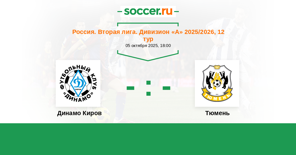 Россия. Вторая лига. Дивизион «А» 10.08.2025 Тюмень Логотип футбольный клуб Тюмень 4:1 Логотип футбольный клуб Динамо Киров Динамо Киров