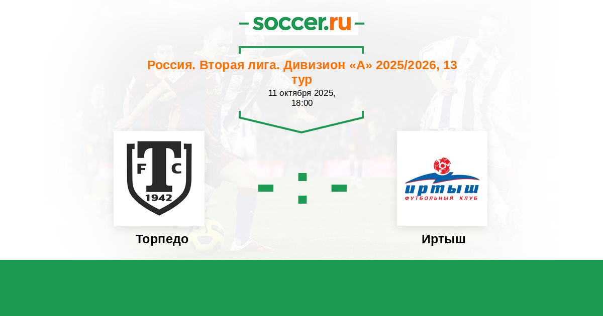 Россия. Вторая лига. Дивизион «А» 30.08.2025 Иртыш Логотип футбольный клуб Иртыш (Омск) 0:1 Логотип футбольный клуб Торпедо (Миасс) Торпедо