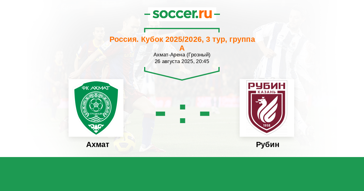 Россия. Кубок 22.10.2025 Рубин Логотип футбольный клуб Рубин (Казань) 3:3 (4:3) Логотип футбольный клуб Ахмат (Грозный) Ахмат