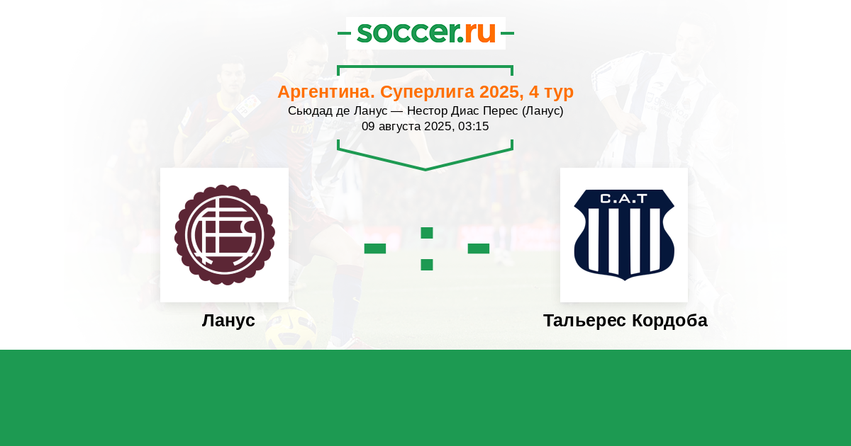 Аргентина. Суперлига 10.02.2026 Ланус Логотип футбольный клуб Ланус 1:1 Логотип футбольный клуб Тальерес Кордоба Тальерес Кордоба