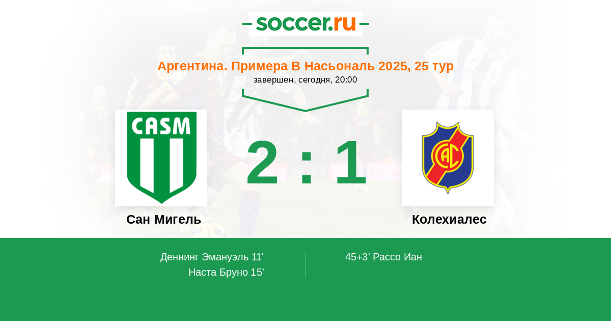 Аргентина. Примера Б Метро 07.04.2019 Колехиалес Логотип футбольный клуб Колехиалес (Висенте Лопес) 1:0 Логотип футбольный клуб Сан Мигель Сан Мигель