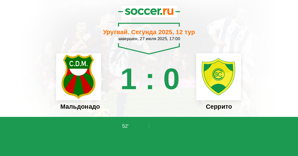 Уругвай. Сегунда 19.10.2025 Серрито Логотип футбольный клуб Серрито (Монтевидео) 0:1 Логотип футбольный клуб Мальдонадо Мальдонадо