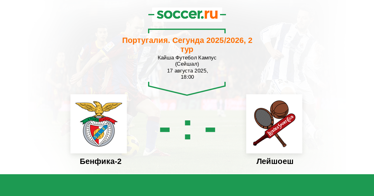Португалия. Сегунда 11.08.2018 Бенфика-2 Логотип футбольный клуб Бенфика-2 (Лиссабон) 2:1 Логотип футбольный клуб Лейшоеш (Матозиньюш) Лейшоеш