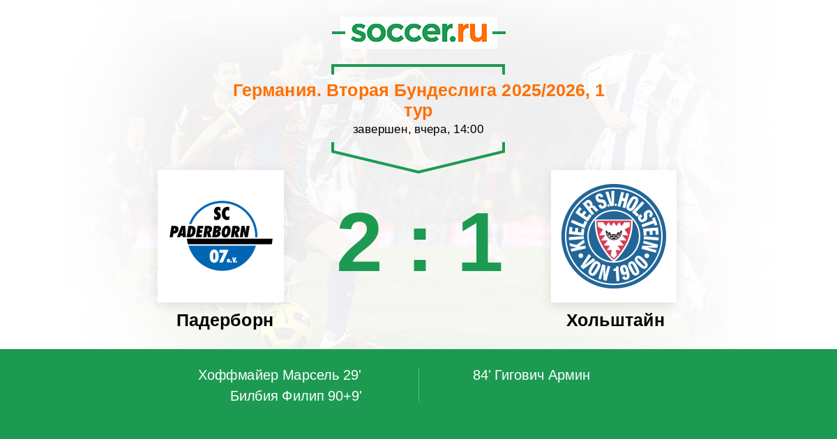 Германия. Бундеслига 2 18.01.2026 Хольштайн Логотип футбольный клуб Хольштайн (Киль) 2:0 Логотип футбольный клуб Падерборн Падерборн