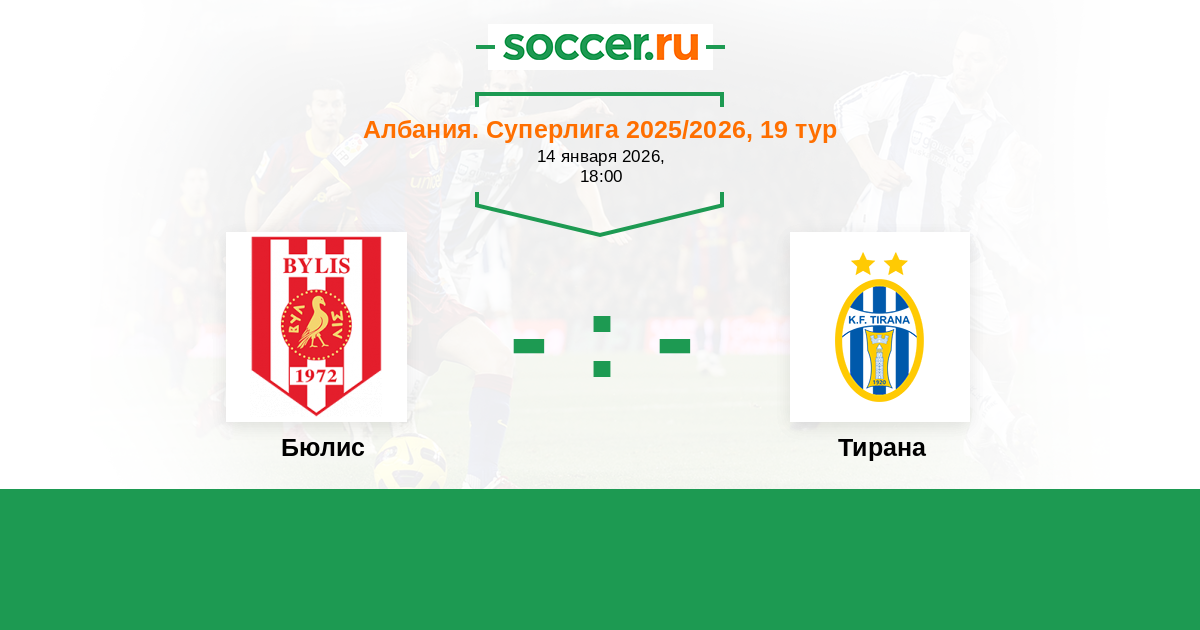 Албания. Суперлига 12.09.2015 Тирана Логотип футбольный клуб Тирана 0:0 Логотип футбольный клуб Бюлис (Баллш) Бюлис