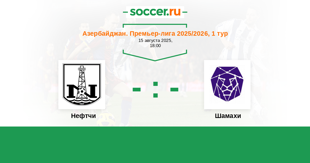 Азербайджан. Премьер-Лига 31.08.2024 Шамахи Логотип футбольный клуб Шамахи (Баку) 0:0 Логотип футбольный клуб Нефтчи (Баку) Нефтчи