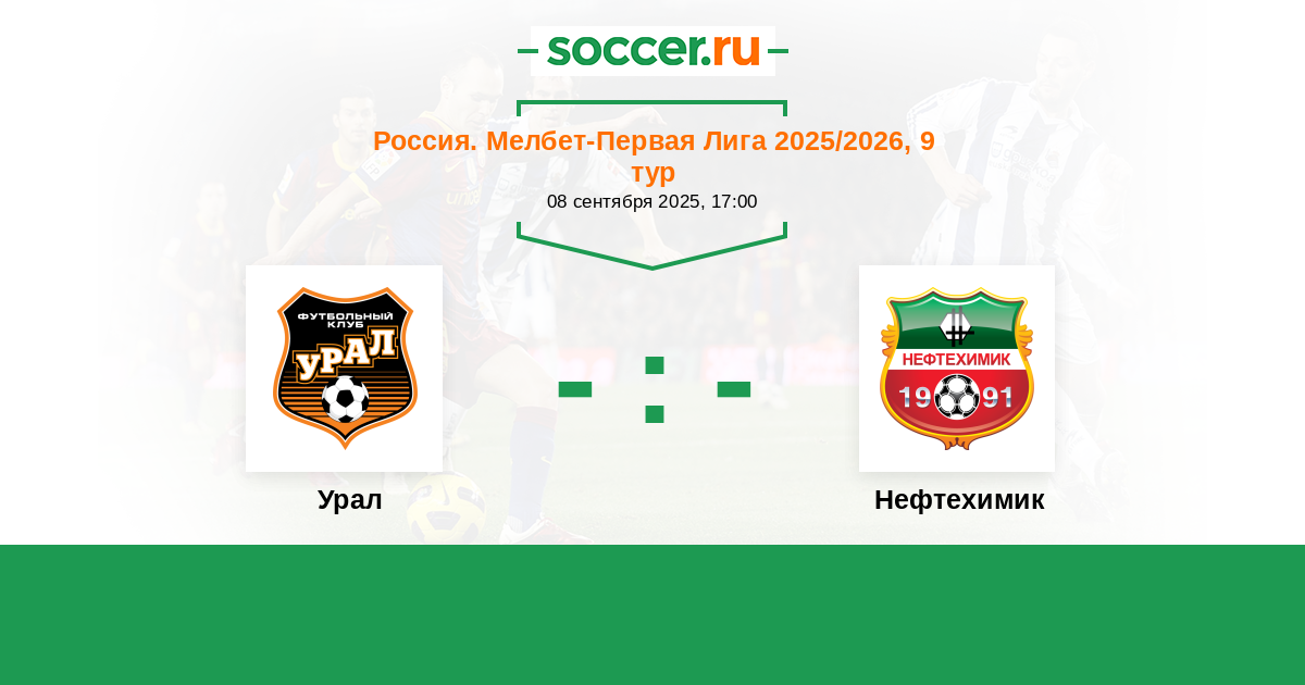 В предстоящем матче 9 - го тура российской Первой Лиги между командами ФК Урал Екатеринбург и ФК Нефтехимик Нижнекамск , моим явным фаворитом на победу является команда хозяев Урал .
