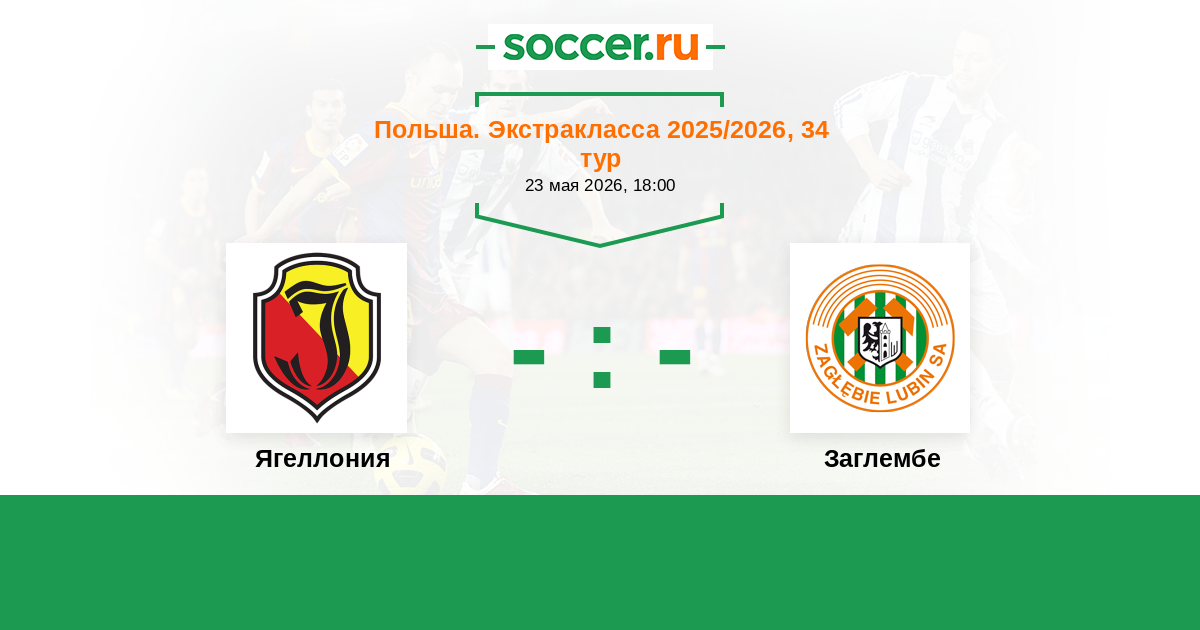 Польша. Экстракласса 21.04.2025 Ягеллония Логотип футбольный клуб Ягеллония (Белосток) 1:3 Логотип футбольный клуб Заглембе (Любина) Заглембе