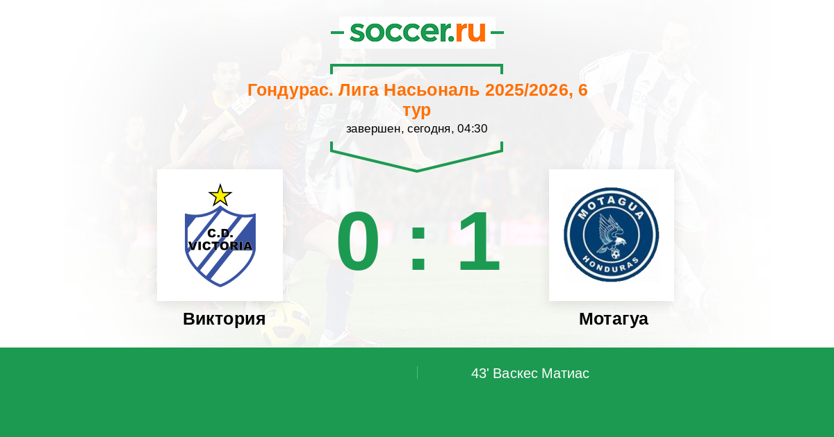 Гондурас. Лига Насьональ 02.11.2025 Мотагуа Логотип футбольный клуб Мотагуа (Тегусигальпа) 2:1 Логотип футбольный клуб Виктория (Ла-Сейба) Виктория