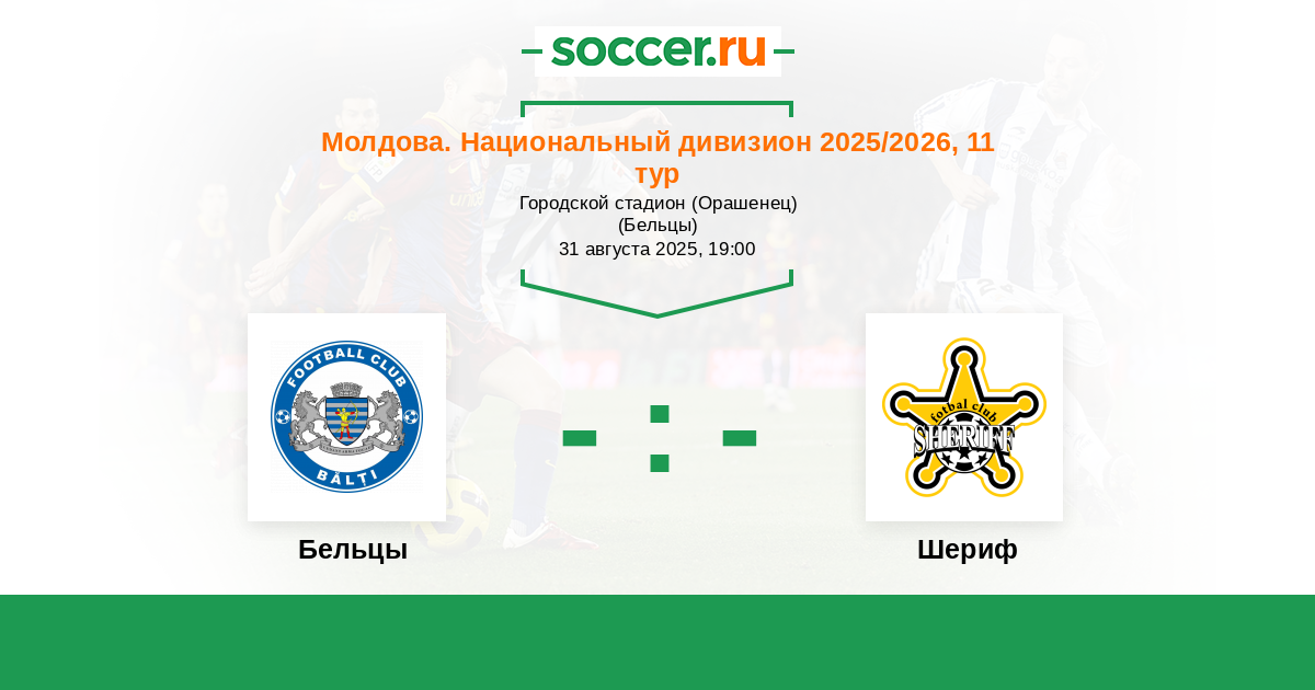 Молдова. Национальный дивизион 02.11.2025 Шериф Логотип футбольный клуб Шериф (Тирасполь) 1:2 Логотип футбольный клуб Бельцы Бельцы