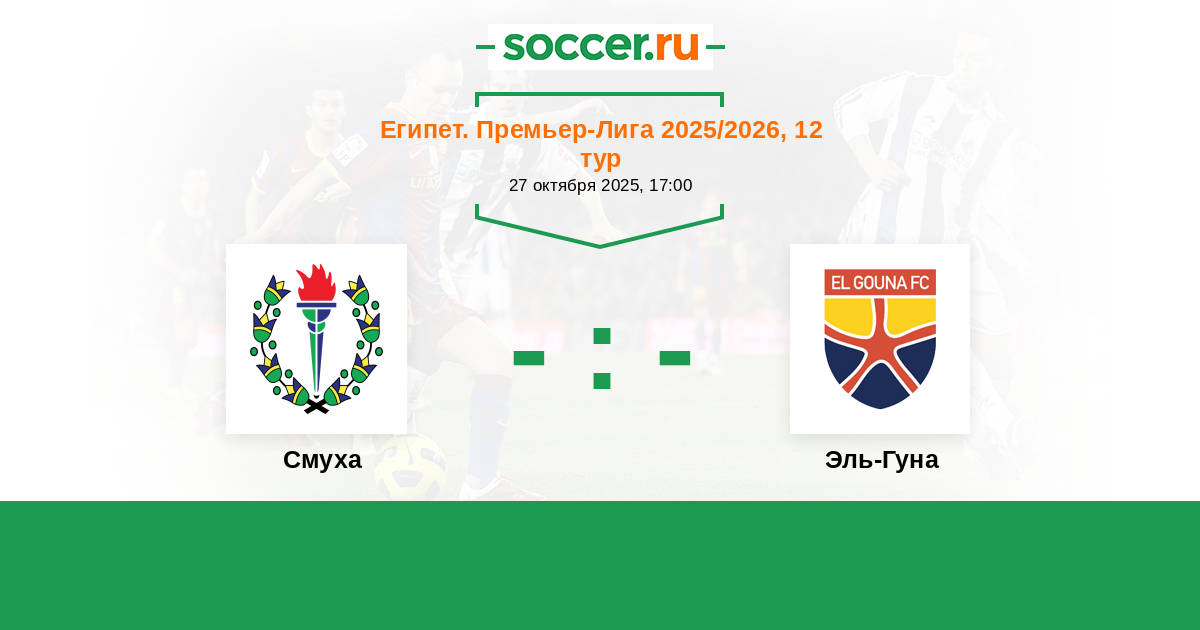 Египет. Премьер-Лига 20.09.2023 Смуха Логотип футбольный клуб Смуха (Александрия) 1:1 Логотип футбольный клуб Эль-Гуна Эль-Гуна