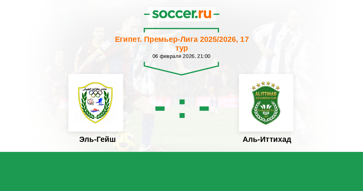 Египет. Премьер-Лига 25.12.2017 Эль-Гейш Логотип футбольный клуб Эль-Гейш (Каир) 0:0 Логотип футбольный клуб Аль-Иттихад (Александрия) Аль-Иттихад