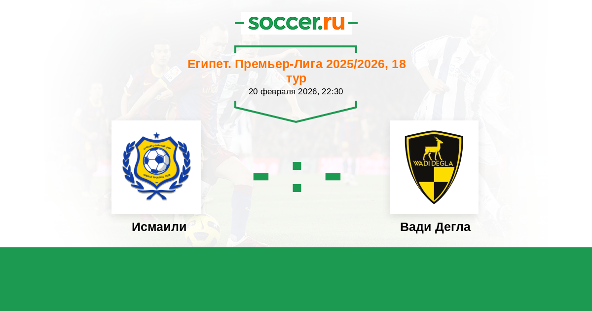 Египет. Премьер-Лига 05.03.2021 Вади Дегла Логотип футбольный клуб Вади Дегла (Каир) 0:0 Логотип футбольный клуб Исмаили (Исмаилия) Исмаили