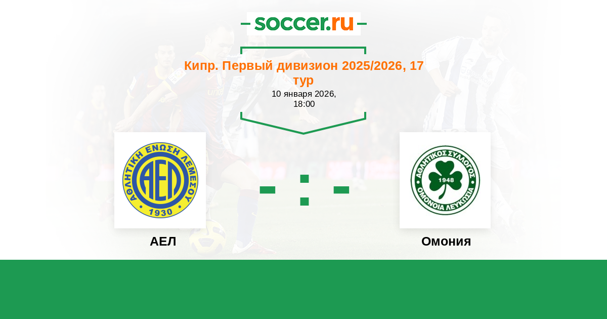 Кипр. Первый Дивизион 20.01.2018 АЕЛ Логотип футбольный клуб АЕЛ (Лимасcол) 2:3 Логотип футбольный клуб Омония (Никосия) Омония