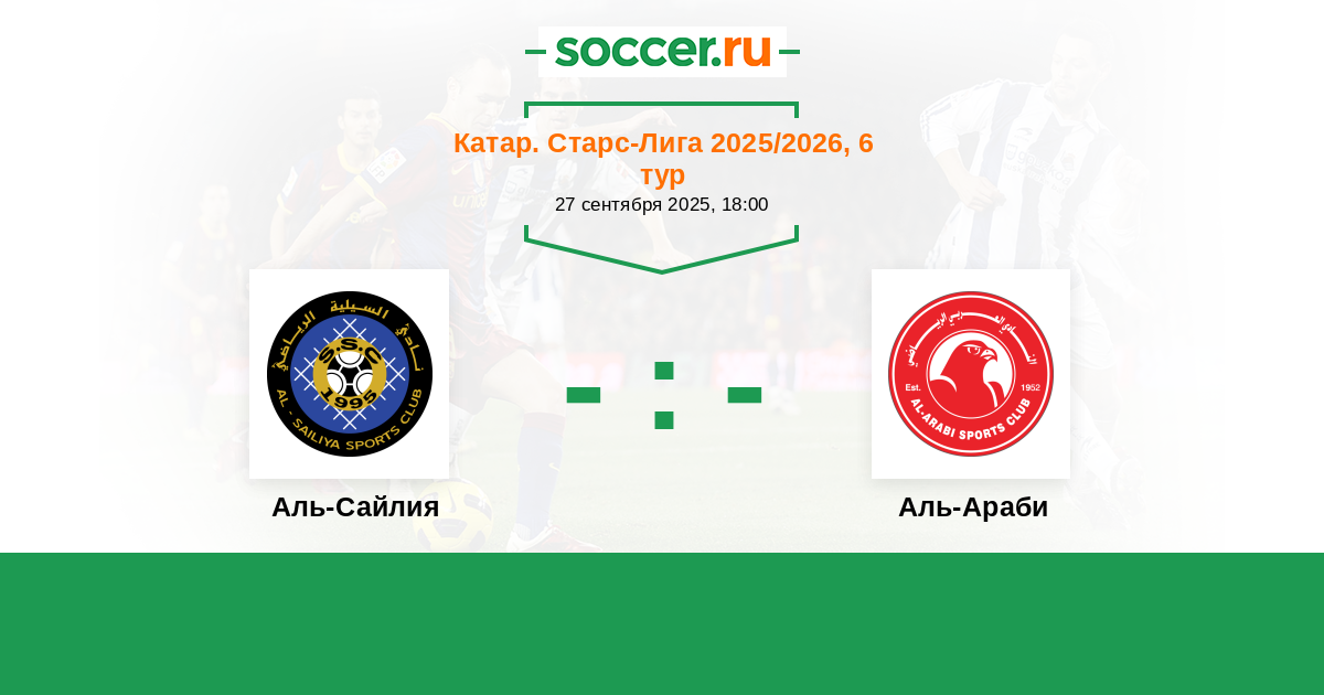 Катар. Старс Лига 16.09.2017 Аль-Араби Логотип футбольный клуб Аль-Араби (Доха) 1:3 Логотип футбольный клуб Аль-Сайлия (Доха) Аль-Сайлия