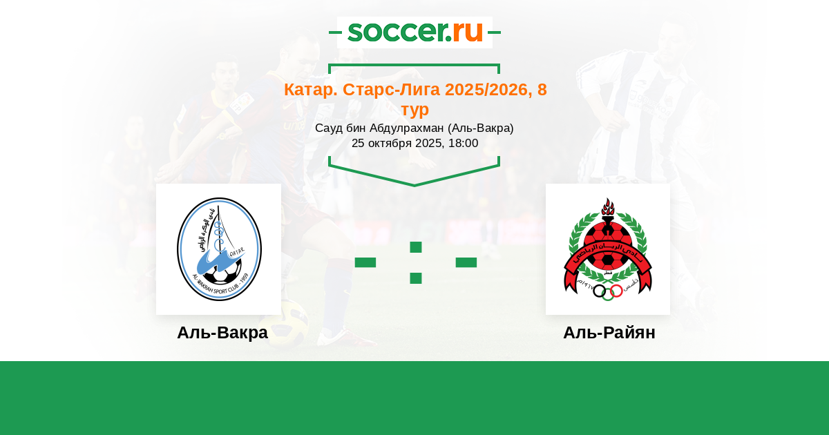 Катар. Старс Лига 22.09.2024 Аль-Райян Логотип футбольный клуб Аль-Райян 0:2 Логотип футбольный клуб Аль-Вакра Аль-Вакра