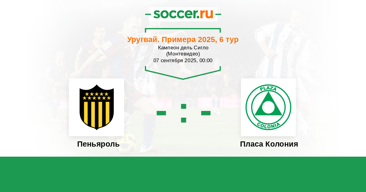 Уругвай. Примера A 24.05.2025 Пеньяроль Логотип футбольный клуб Пеньяроль (Монтевидео) 2:0 Логотип футбольный клуб Пласа Колония (Колония-дель-Сакраменто) Пласа Колония