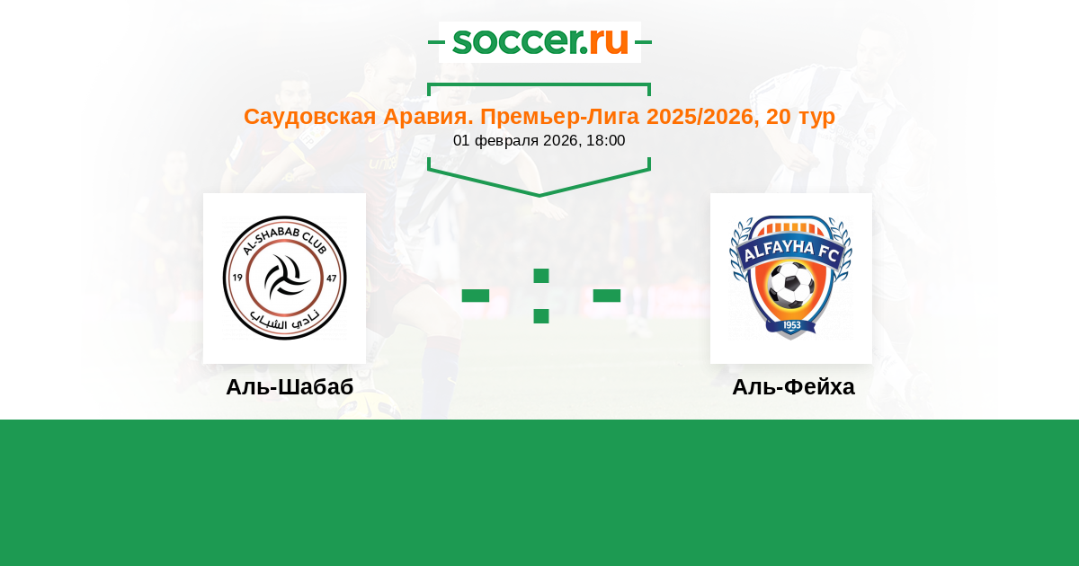 Саудовская Аравия. Премьер-Лига 19.09.2025 Аль-Фейха Логотип футбольный клуб Аль-Фейха (Аль-Маджмаа) 0:0 Логотип футбольный клуб Аль-Шабаб (Эр-Рияд) Аль-Шабаб