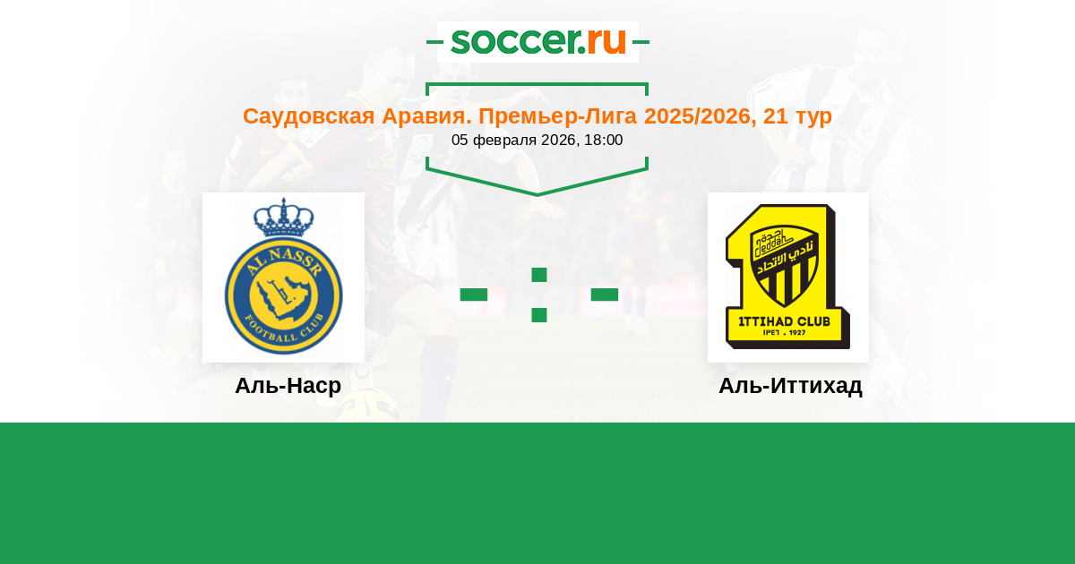 Саудовская Аравия. Премьер-Лига 26.09.2025 Аль-Иттихад Логотип футбольный клуб Аль-Иттихад (Джидда) 0:2 Логотип футбольный клуб Аль-Наср (Эр-Рияд) Аль-Наср