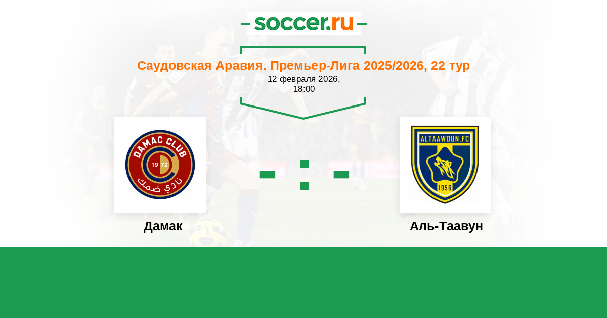 Саудовская Аравия. Премьер-Лига 19.10.2025 Аль-Таавун Логотип футбольный клуб Аль-Таавун (Бурайда) 6:1 Логотип футбольный клуб Дамак (Хамис-Мушайт) Дамак