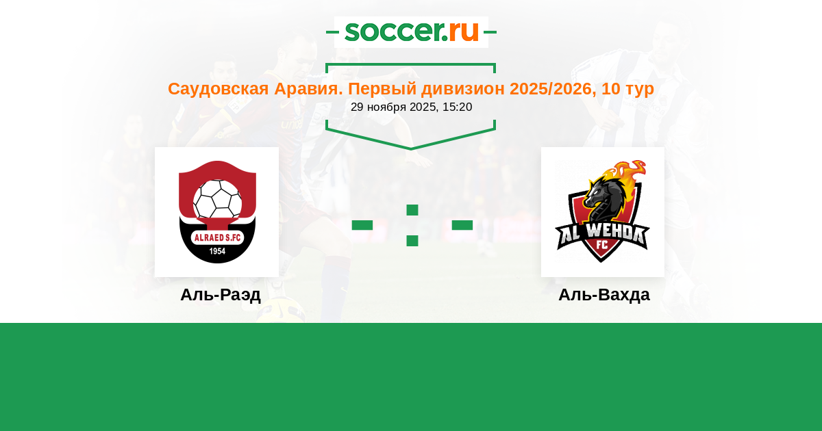 Саудовская Аравия. Премьер-Лига 09.08.2020 Аль-Вахда Логотип футбольный клуб Аль-Вахда (Мекка) 0:0 Логотип футбольный клуб Аль-Раэд (Бурайда) Аль-Раэд