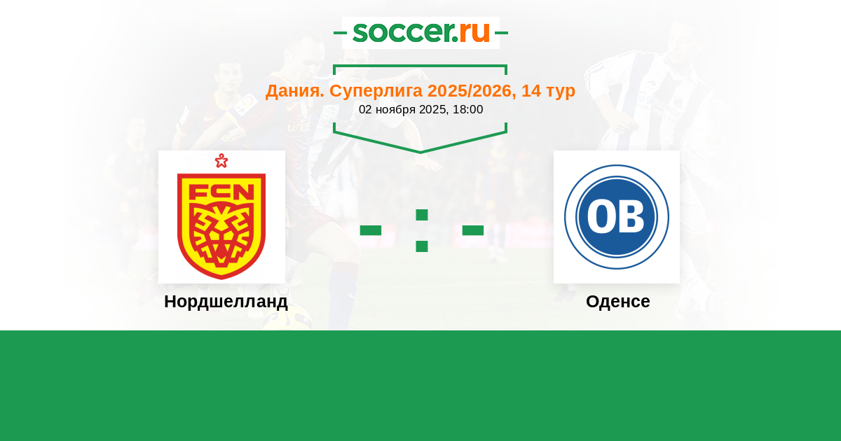 Дания. Суперлига 02.09.2018 Оденсе Логотип футбольный клуб Оденсе 0:0 Логотип футбольный клуб Нордшелланд (Фарум) Нордшелланд