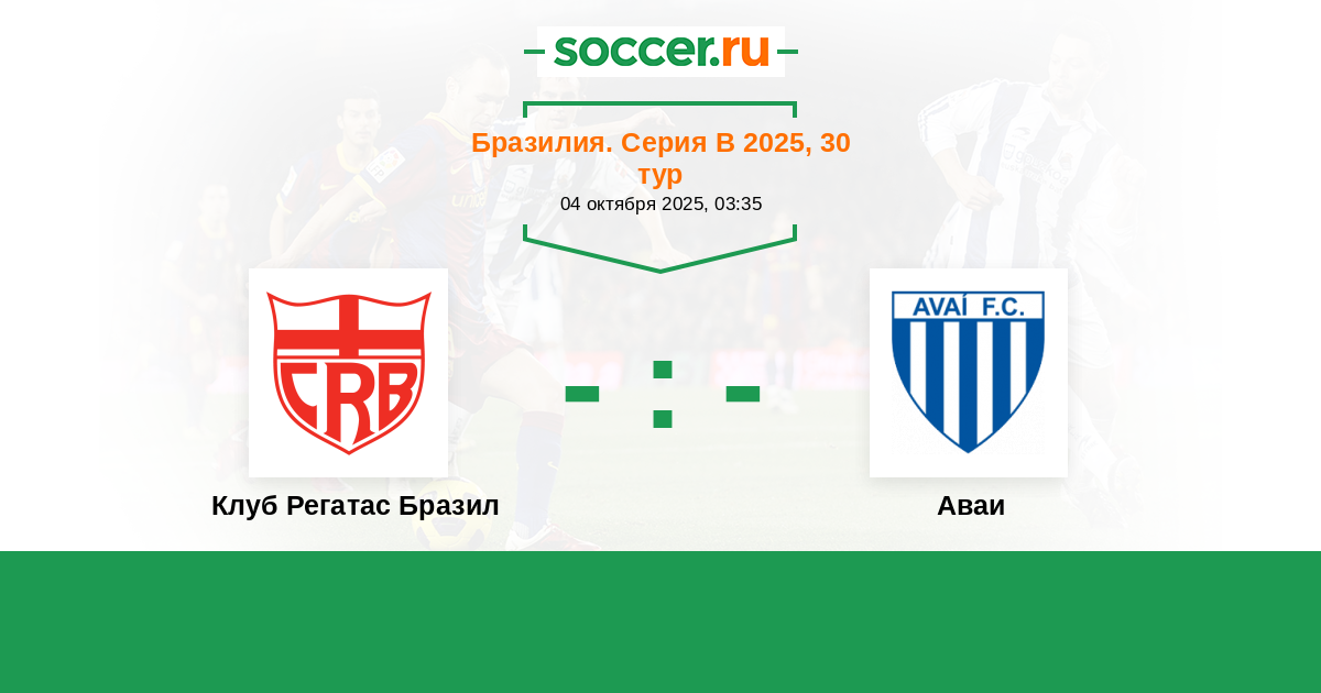 Бразилия. Серия В 26.09.2021 Клуб Регатас Бразил Логотип футбольный клуб Клуб Регатас Бразил (Масейо) 1:2 Логотип футбольный клуб Аваи (Флорианополис) Аваи