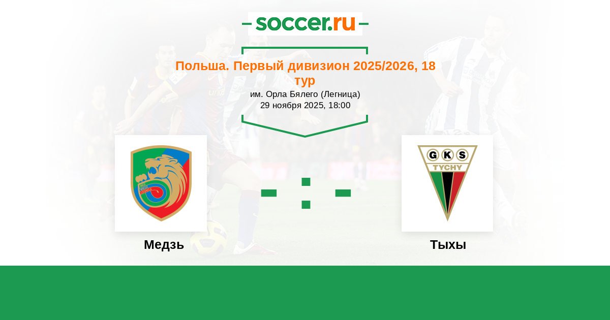 Польша. Первый дивизион 19.07.2025 Тыхы Логотип футбольный клуб Тыхы 4:3 Логотип футбольный клуб Медзь (Легница) Медзь