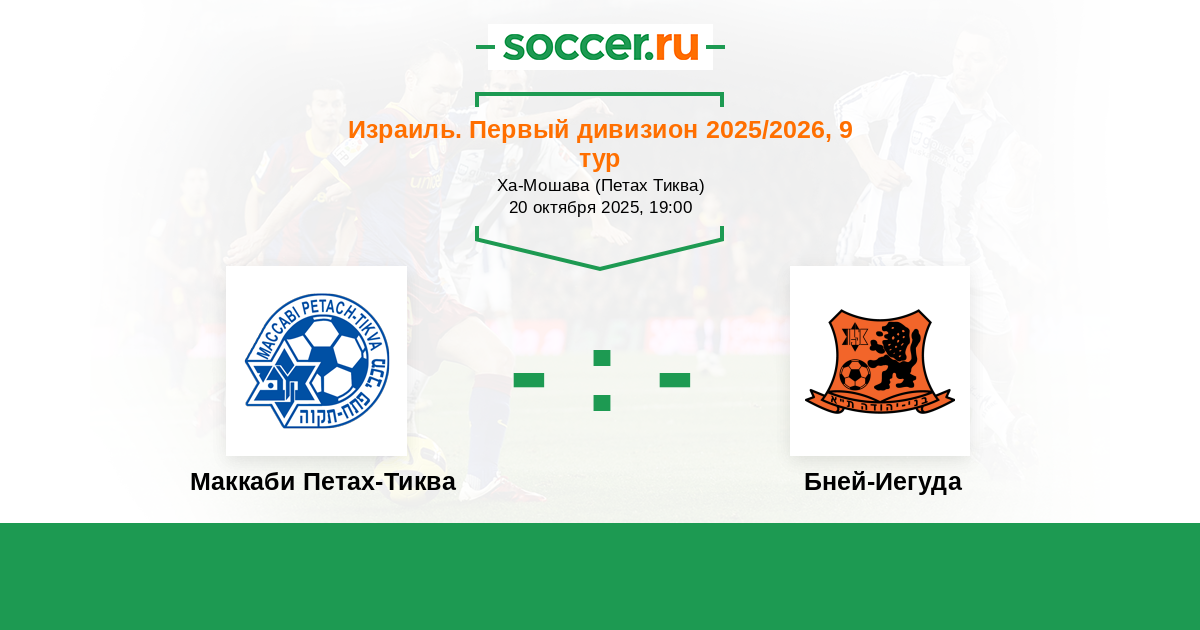 Израиль. Премьер-Лига 05.10.2013 Бней-Иегуда Логотип футбольный клуб Бней-Иегуда (Тель-Авив) 2:4 Логотип футбольный клуб Маккаби Петах-Тиква Маккаби Петах-Тиква