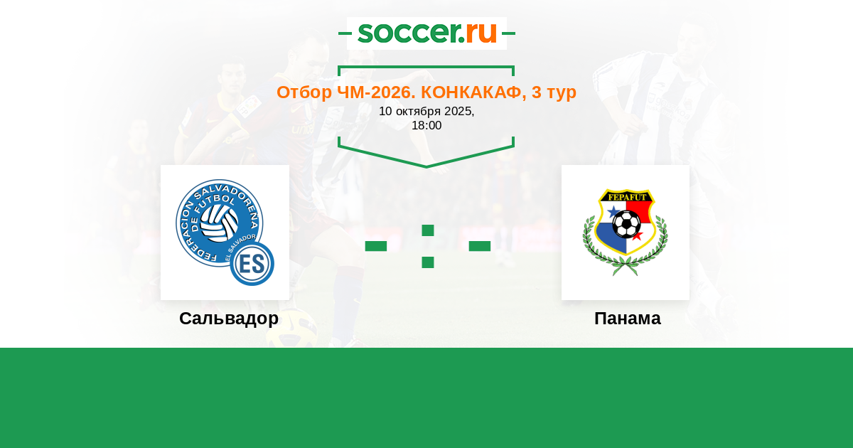 Отбор ЧМ. КОНКАКАФ 19.11.2025 Панама Логотип Панама 3:0 Логотип Сальвадор Сальвадор