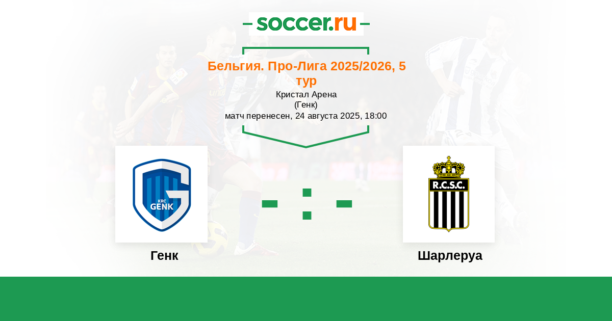 Бельгия. Про-Лига 20.08.2023 Генк Логотип футбольный клуб Генк 0:0 Логотип футбольный клуб Шарлеруа Шарлеруа