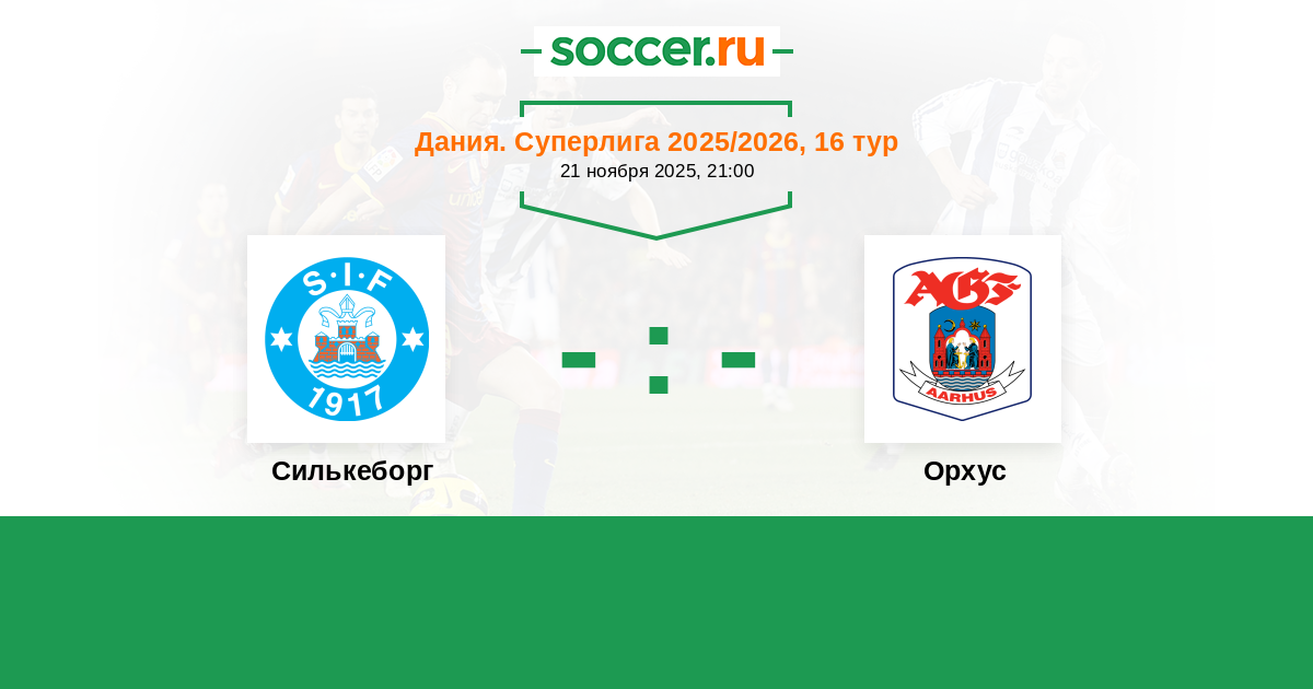 Дания. Суперлига 04.11.2016 Орхус Логотип футбольный клуб Орхус 0:0 Логотип футбольный клуб Силькеборг Силькеборг