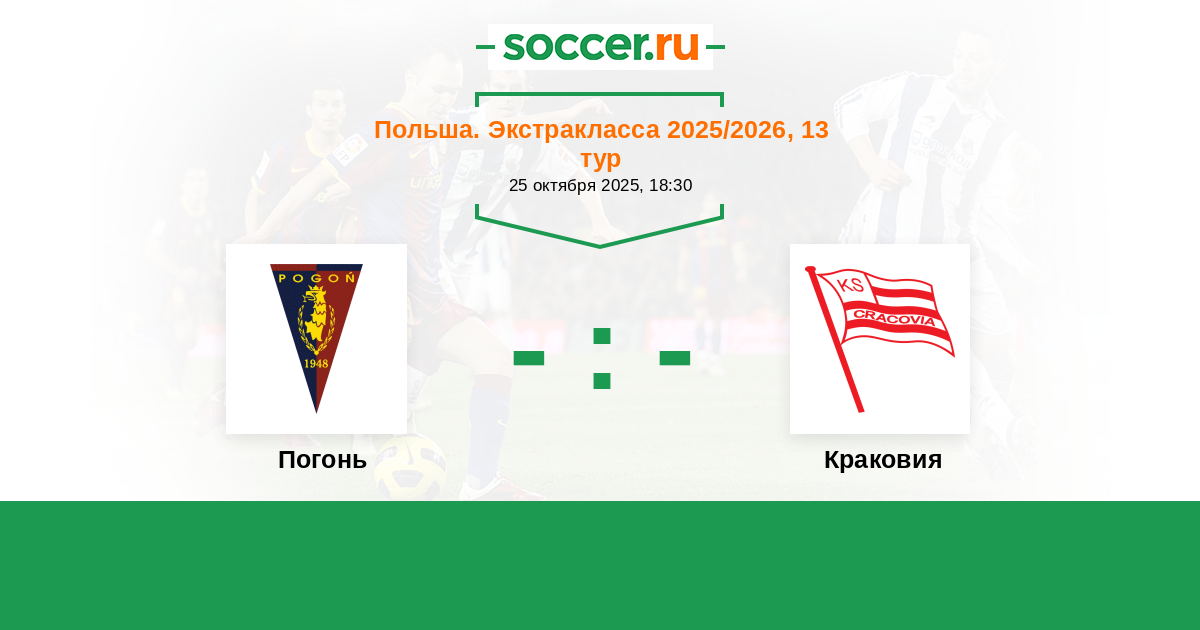 Польша. Экстракласса 25.10.2019 Краковия Логотип футбольный клуб Краковия 2:0 Логотип футбольный клуб Погонь (Щецин) Погонь