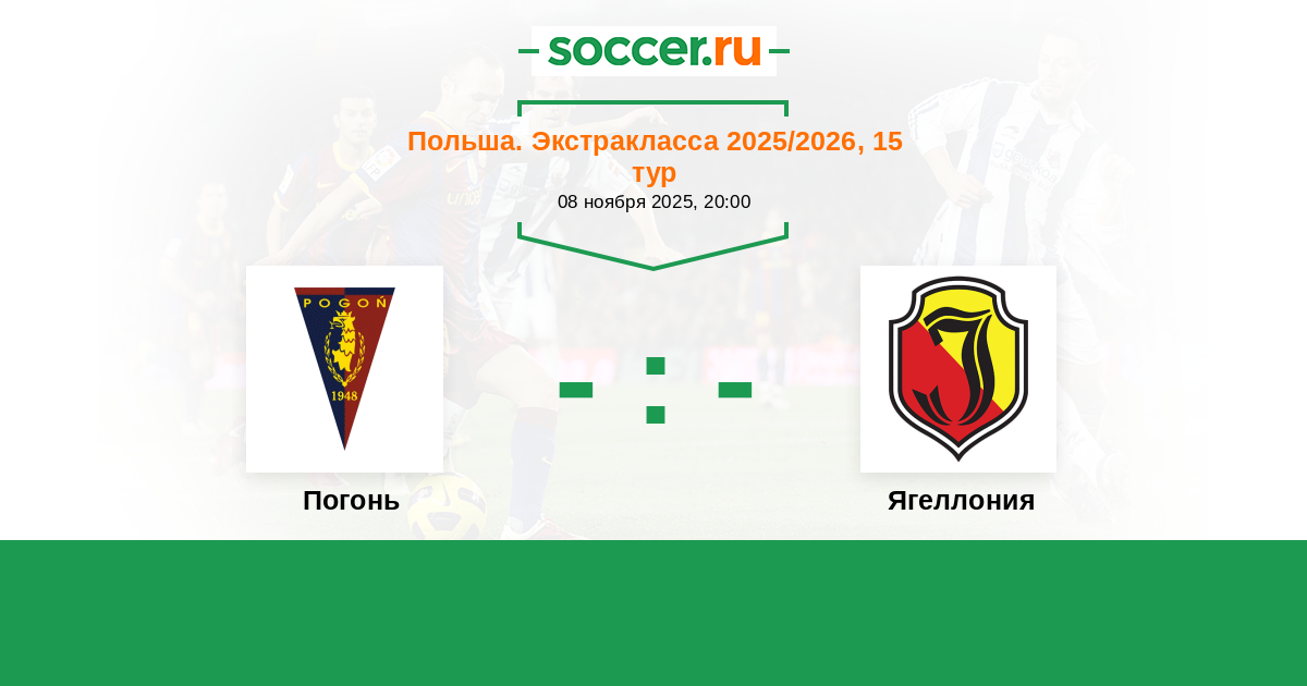 Польша. Экстракласса 01.12.2024 Погонь Логотип футбольный клуб Погонь (Щецин) 1:1 Логотип футбольный клуб Ягеллония (Белосток) Ягеллония