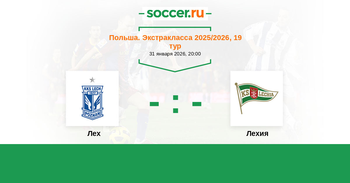 Польша. Экстракласса 23.02.2020 Лех Логотип футбольный клуб Лех (Познань) 2:0 Логотип футбольный клуб Лехия (Гданьск) Лехия