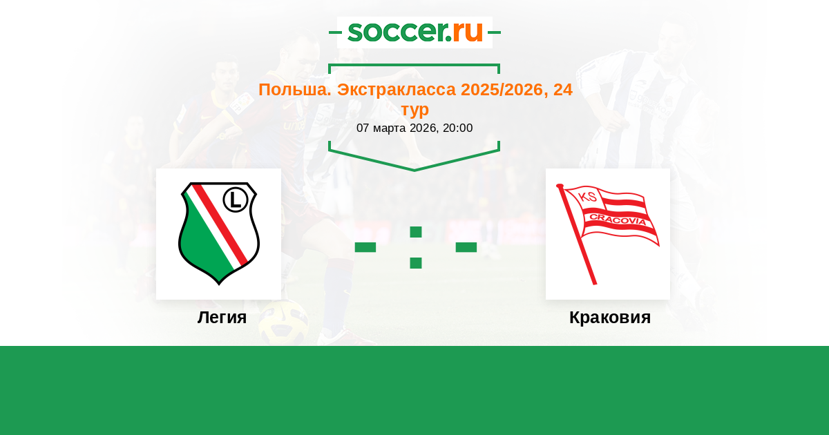 Польша. Экстракласса 18.04.2021 Легия Логотип футбольный клуб Легия (Варшава) 0:0 Логотип футбольный клуб Краковия Краковия