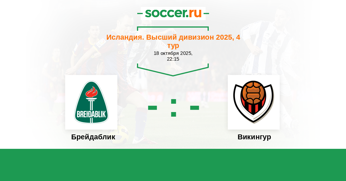 Исландия. Высший дивизион 31.08.2025 Викингур Логотип футбольный клуб Викингур (Рейкьявик) 2:2 Логотип футбольный клуб Брейдаблик (Коупавогюр) Брейдаблик