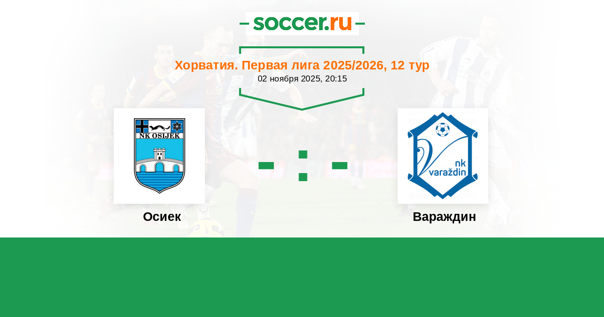 Хорватия. Первая лига 30.11.2019 Вараждин Логотип футбольный клуб Вараждин 1:1 Логотип футбольный клуб Осиек Осиек