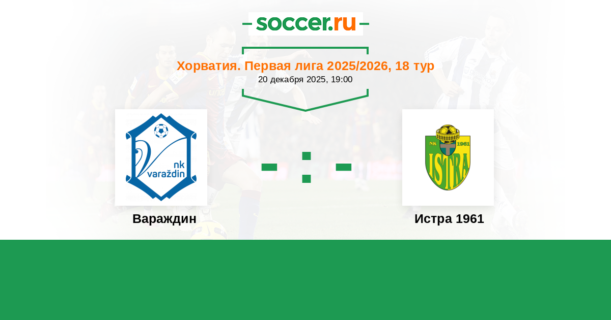 Хорватия. Первая лига 01.12.2023 Истра 1961 Логотип футбольный клуб Истра 1961 (Пула) 2:0 Логотип футбольный клуб Вараждин Вараждин