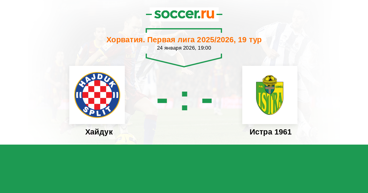 Хорватия. Первая лига 25.08.2024 Истра 1961 Логотип футбольный клуб Истра 1961 (Пула) 1:1 Логотип футбольный клуб Хайдук (Сплит) Хайдук