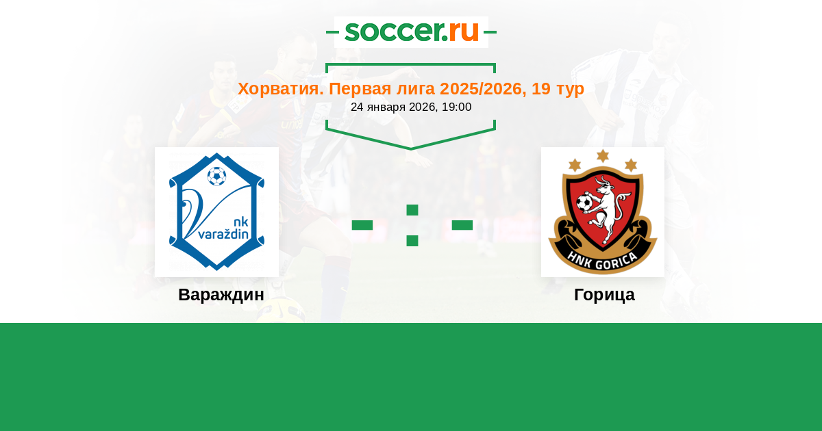 Хорватия. Первая лига 25.01.2025 Горица Логотип футбольный клуб Горица (Велика Горица) 1:1 Логотип футбольный клуб Вараждин Вараждин