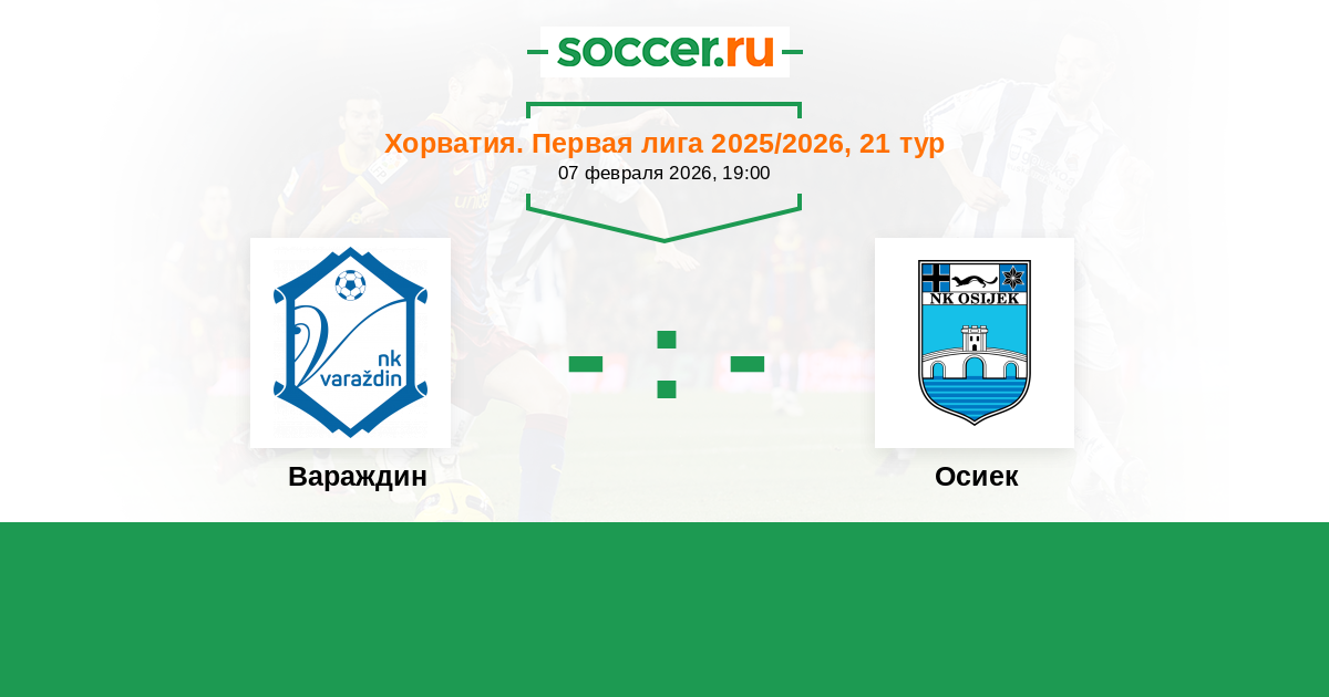 Хорватия. Первая лига 26.02.2021 Вараждин Логотип футбольный клуб Вараждин 2:3 Логотип футбольный клуб Осиек Осиек