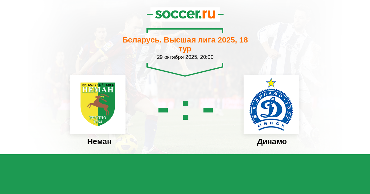 Беларусь. Высшая лига 02.09.2018 Динамо Логотип футбольный клуб Динамо (Минск) 1:0 Логотип футбольный клуб Неман (Гродно) Неман