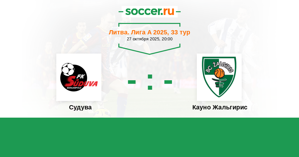 Литва. Лига А 20.10.2020 Судува Логотип футбольный клуб Судува (Мариямполе) 1:1 Логотип футбольный клуб Кауно Жальгирис (Каунас) Кауно Жальгирис